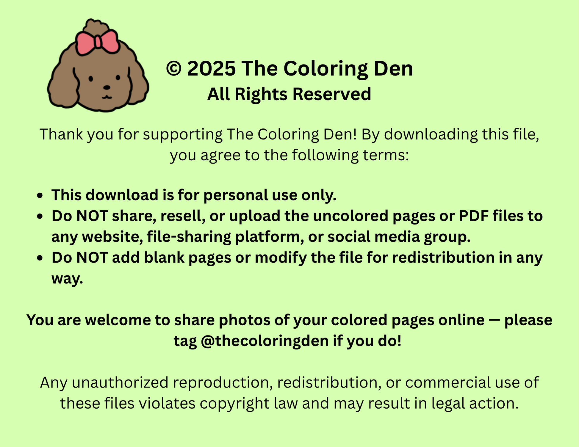 • Feel free to share your colored creations online — just tag @thecoloringdenstudio 💕